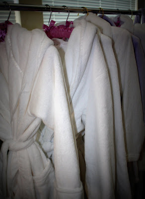 I'll do the usual two part-er birthday party posts since there are always waay too many pixs! As usual, the first part is the decor, but I threw in a few pictures of the girls because I probably won't have time to blog the second part for a couple of days!For Kailee's party this year we went with a spa theme! It was lots of fun! Thank goodness I had lots of helpers because there is no way I could've pulled this off by myself! We had a mani/pedi station, we did facials, make-up, hair, and last but not least the girls walked down the runway in their fashion show!