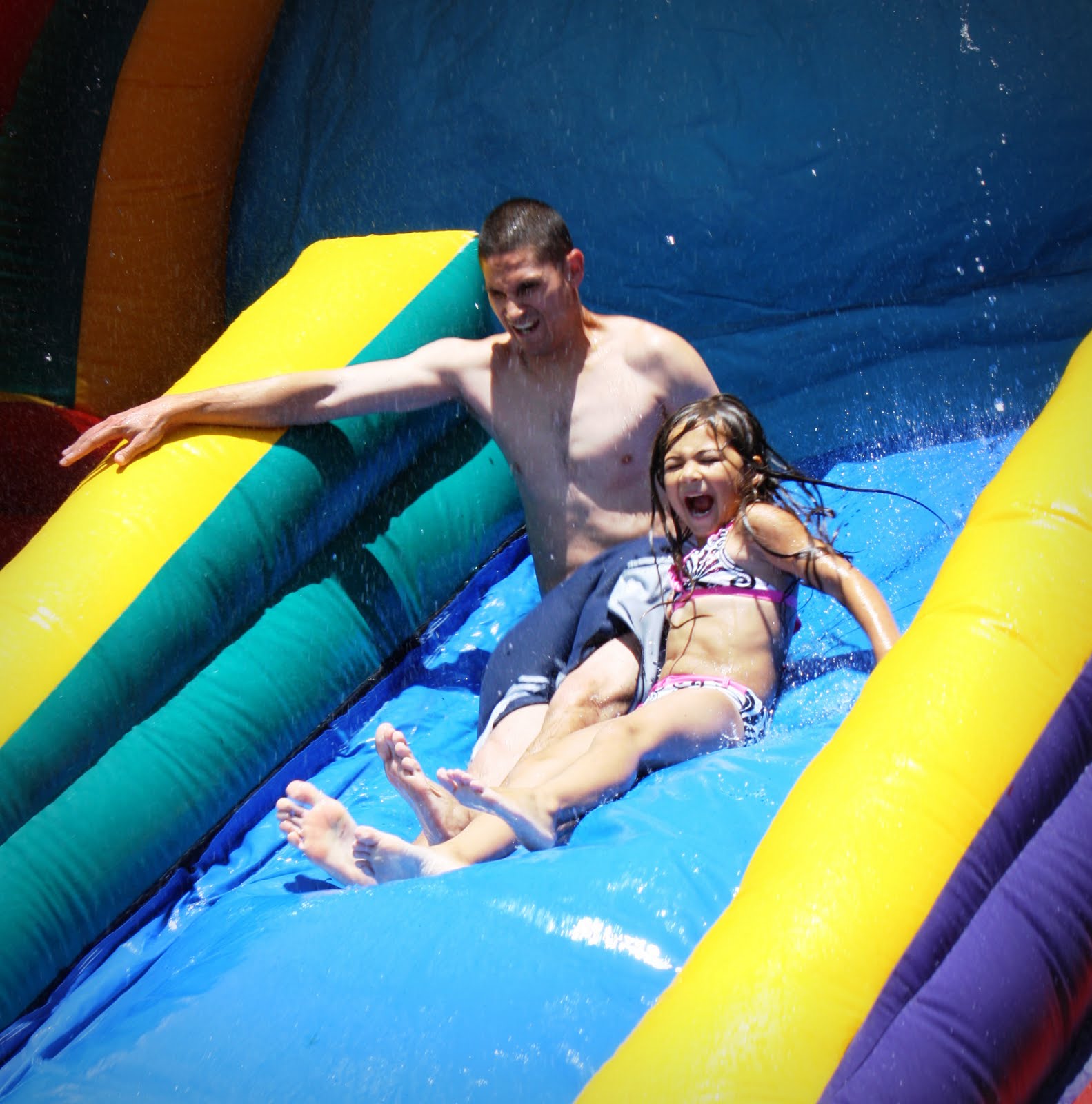 4th of July weekend was busy, busy, busy! Saturday the 3rd was Grampy's 80th birthday celebration. His party was at a winery with a catered dinner, so the party didn't start until that evening. Our neighbors were celebrating the 4th a day early since a few people were going to be gone, so we all pitched in and ordered the bouncy water slide thingy! The kids played on that thing all day and had a blast!